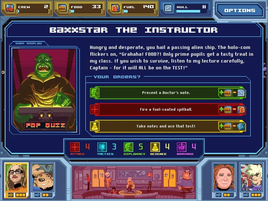 Inspired by both classic Sci-Fi TV tropes and misremembered nostalgia for educational games like Oregon Trail, Orion Trail puts you in the captain’s seat of the Indestructible II, flagship of Galaxy Force.